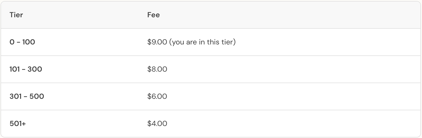 The enrollment fee is taken automatically on enrollment and is deducted from the first payment. As enrollment grows, each tiered rate is applied to the campers that fall within that specific band.